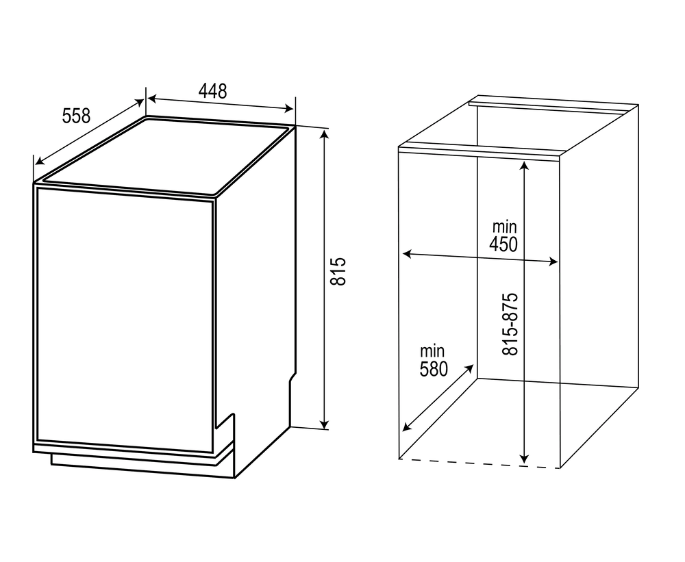 машина посудомоечная встраиваемая, 45 см, 11 комплектов