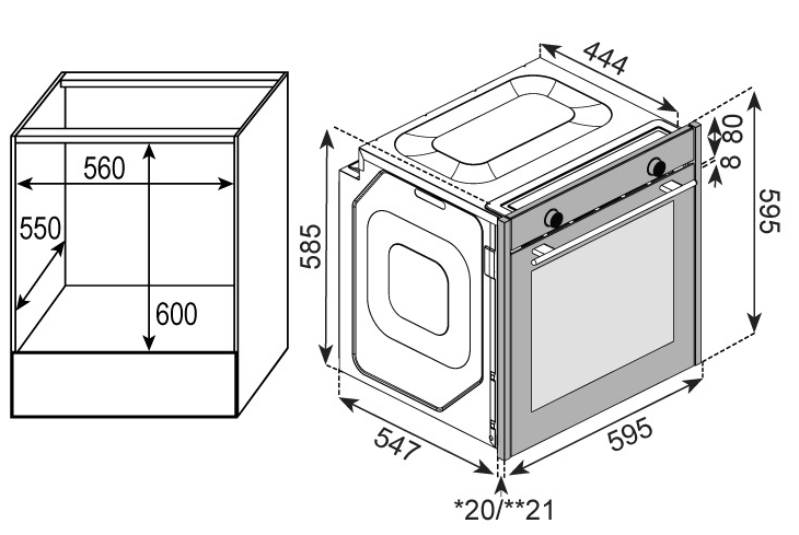 Ширина корпуса электроприбора. Особенно важно точно знать точную допустимую ширину для встраиваемой техники.