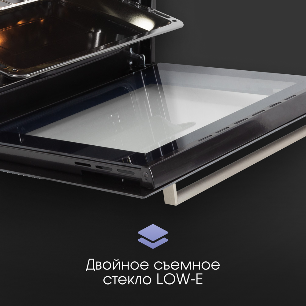 Чем больше стекол в дверце духовки, тем меньше она нагревается снаружи. Это снижает риск соприкосновения с горячей поверхностью и ожога.