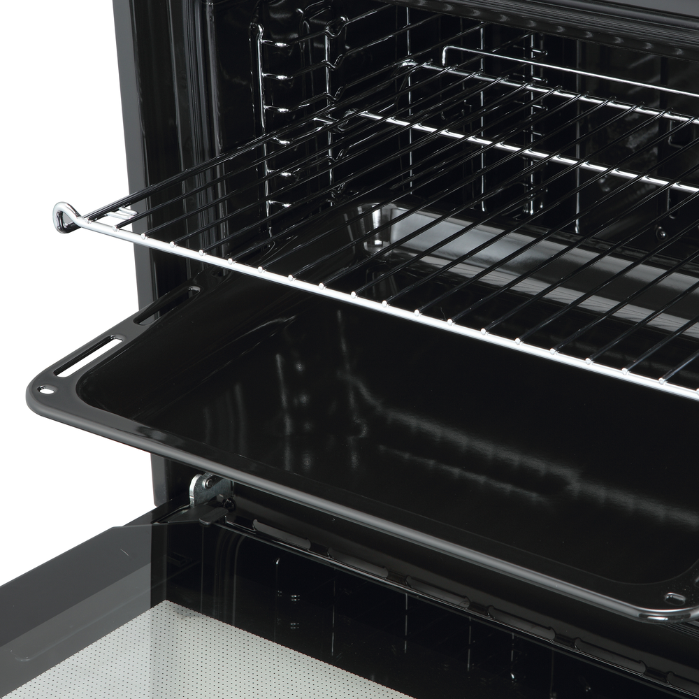 Выдвижные металлические полозья, которые легко выезжают за пределы камеры духовки вместе с противнем, не давая ему упасть.