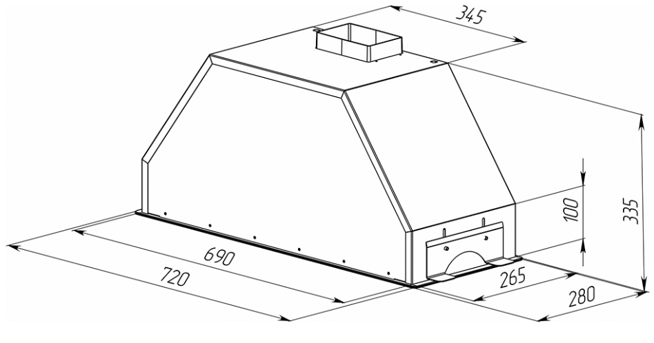 вытяжка встраиваемая в подвесной шкаф, 72 см, 1100 м3/час, бежевый