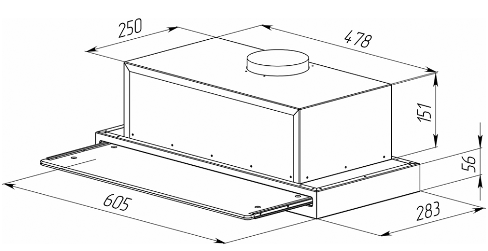 вытяжка встраиваемая телескопическая, 60 см, 750 м3/ч, черный
