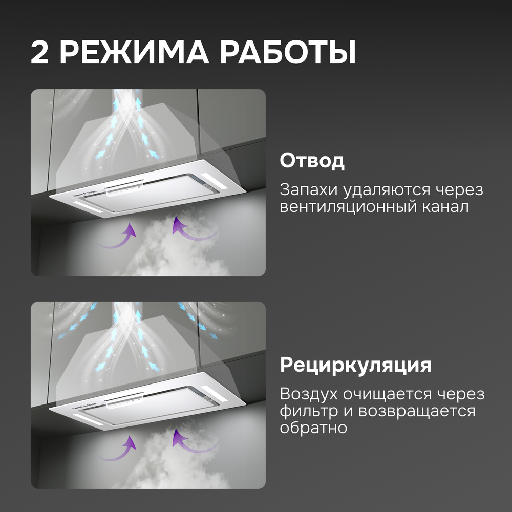 вытяжка встраиваемая в подвесной шкаф, 52 см, 1100 м3/ч, белый