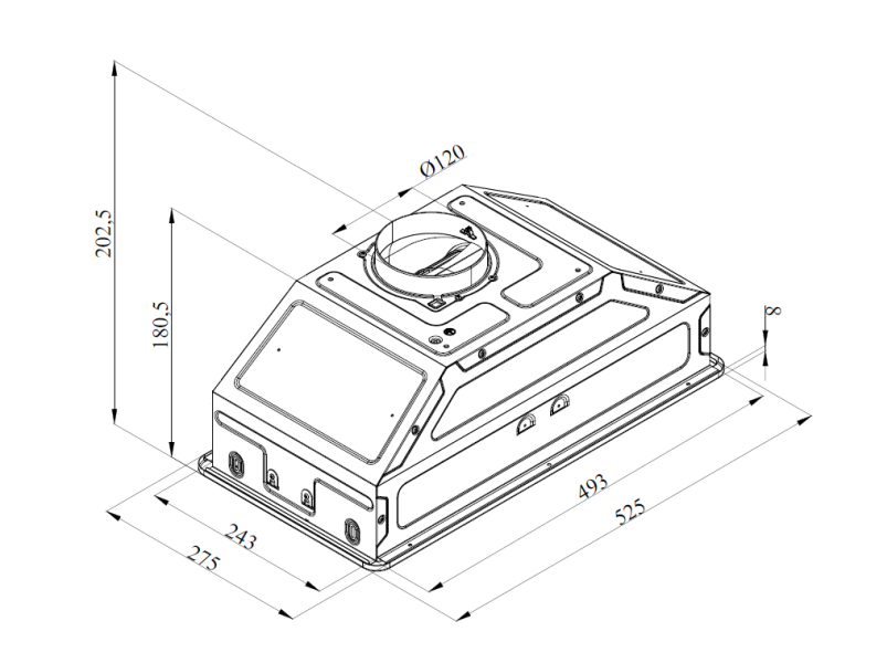 вытяжка встраиваемая в подвесной шкаф, 53 см, 450 м3/час, черный