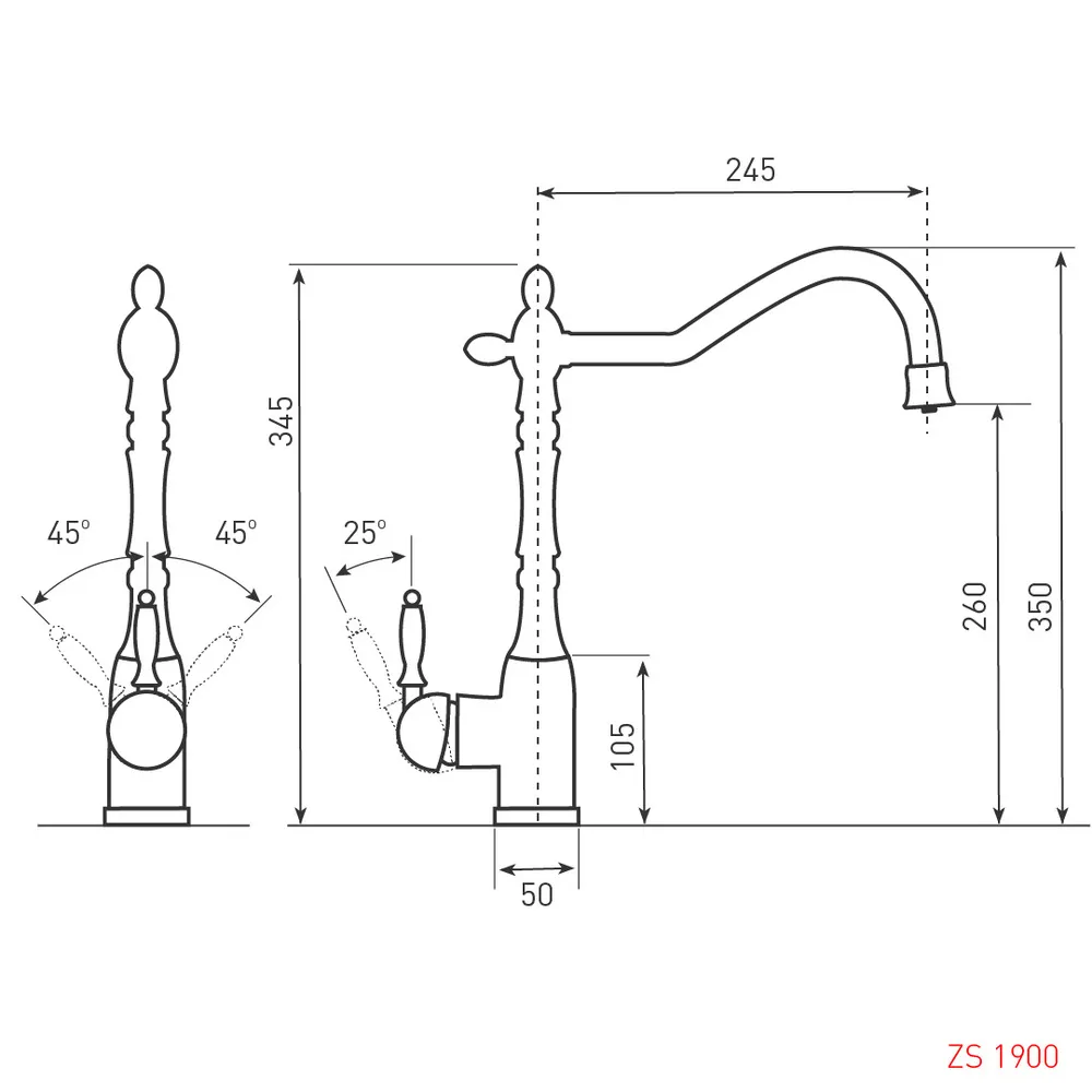 Zigmund & Shtain ZS 1900, смеситель, топленое молоко Смеситель из металла