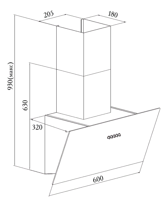 вытяжка наклонная, 60 см, 650 м3/ч, белое стекло