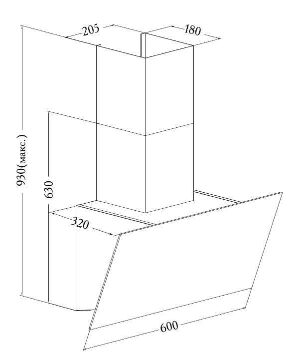 вытяжка наклонная, 60 см, 650 м3/ч, белое стекло
