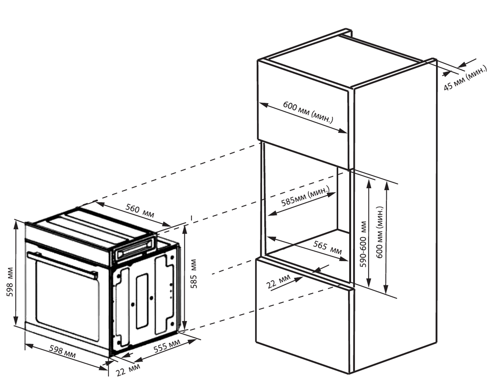 Ширина корпуса электроприбора. Особенно важно точно знать точную допустимую ширину для встраиваемой техники.
