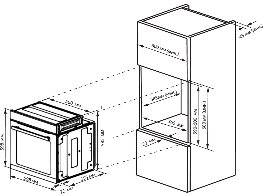 Ширина корпуса электроприбора. Особенно важно точно знать точную допустимую ширину для встраиваемой техники.