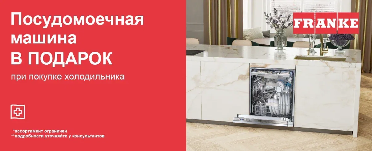 Обновите технику на кухне с двойной выгодой! Ведущий мировой бренд Franke представляет эксклюзивное предложение: при покупке любого холодильника или морозильного шкафа вы получаете посудомоечную машину Franke FDW 4510 E8P E — абсолютно бесплатно! Акция действует с 29 декабря 2025 года по 31 марта 2026 года.