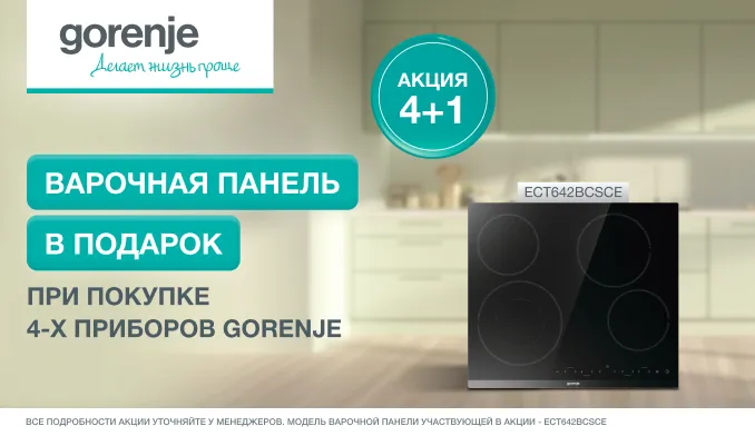 4 прибора → Вам в Подарок предоставляется Варочная поверхность Gorenje ECS643BCSC (5-й прибор в комплекте)Условия акции: