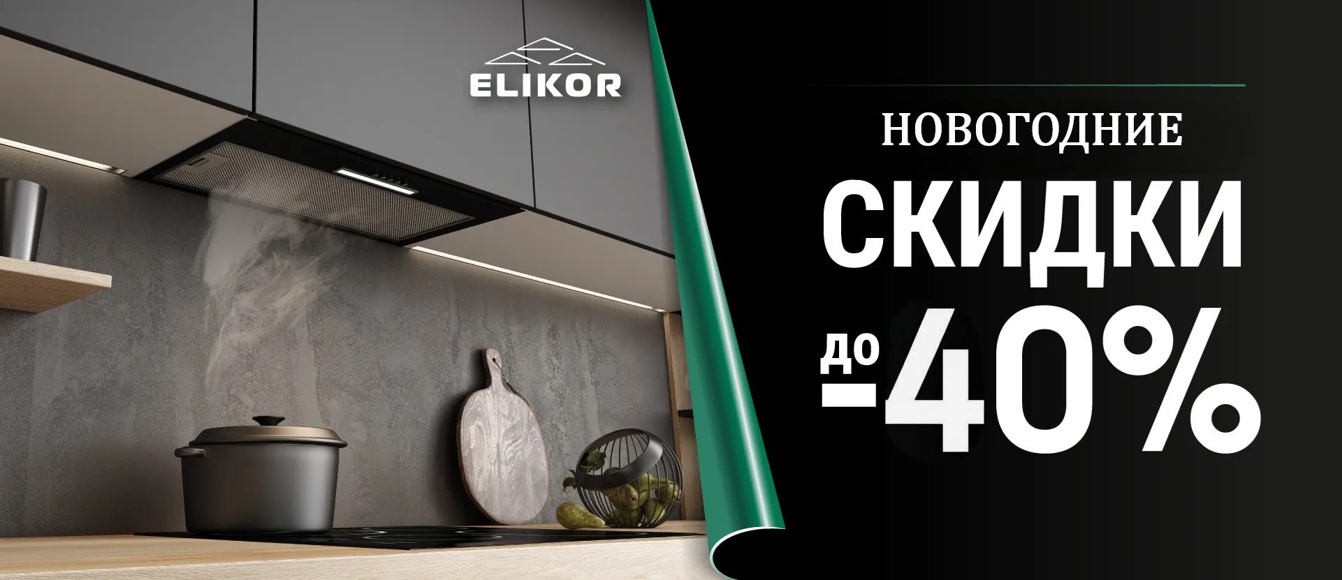 Большая зимняя распродажа культовых кухонных вытяжек Elikor! Только до 31 января 2026 года вы можете приобрести лучшие модели по специальным ценам со скидкой до 37%. В акции участвуют десятки позиций со склада и от поставщика — от бюджетных встраиваемых до мощных дизайнерских моделей.