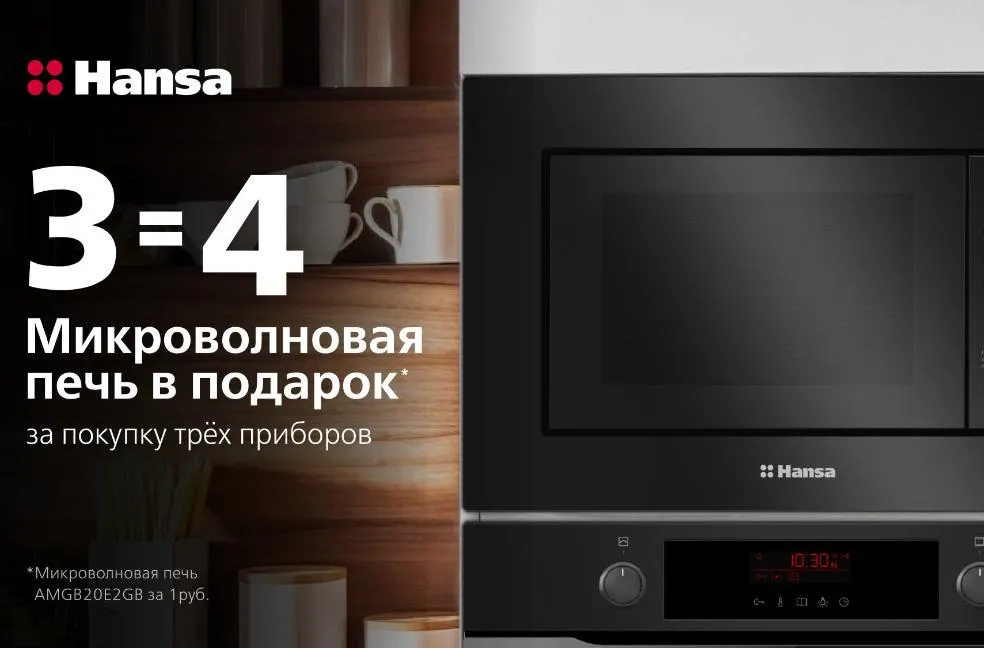 Создайте современную кухню с умной выгодой! Hansa представляет специальное предложение: приобретите комплект техники для вашей кухни и получите полезный подарок — микроволновую печь Hansa AMGB20E2GB совершенно бесплатно!