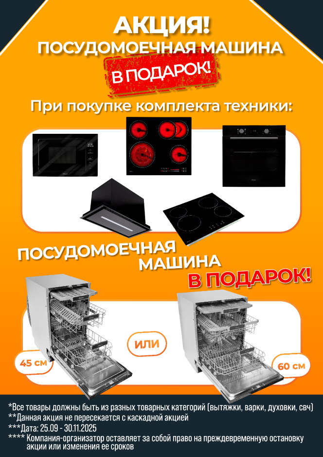 4 прибора → Посудомоечная машина за 1 рубль ( 5-й прибор в комплекте )
