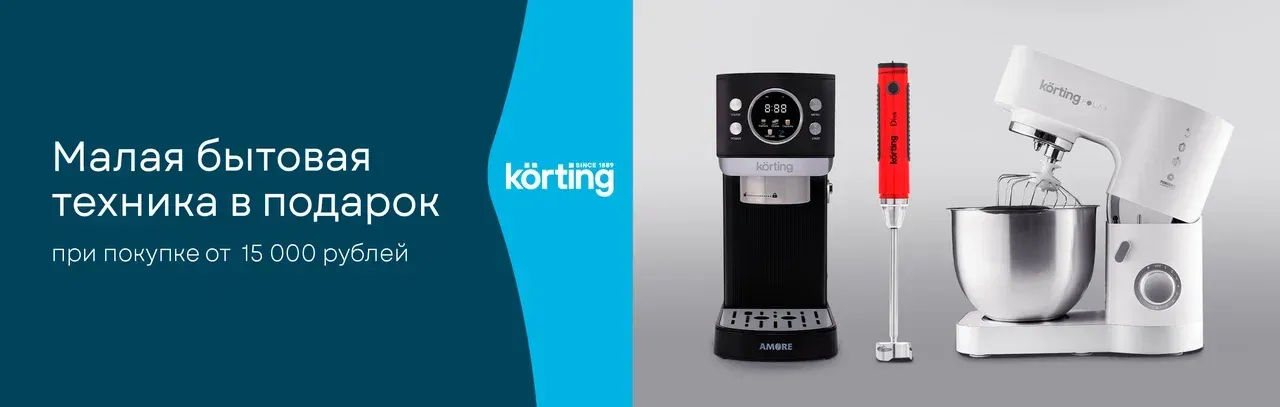 Превратите покупку техники в приятный бонус! С 26 декабря 2025 по 31 января 2026 года бренд KORTING подготовил для вас сюрприз: за любую покупку из широчайшего ассортимента вы получаете полезный и стильный подарок для кухни. Чем больше сумма — тем ценнее подарок! 🎁